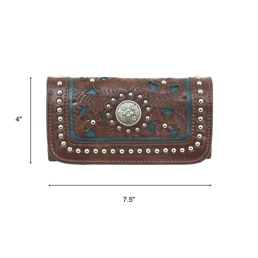 American West Womens Lady Lace Dark Brown Leather Trifold Wallet