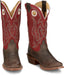 Justin Mens Ante Up 13in Western Hickory/Red Leather Frontier Cowboy Boots