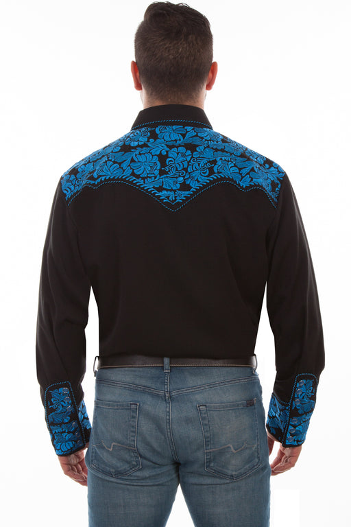 Scully Mens Floral Tooled Embroidery Royal Poly/Rayon L/S Shirt