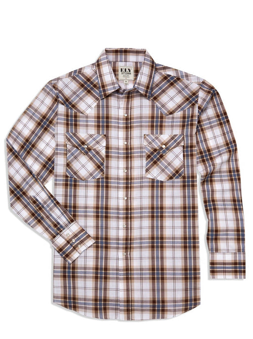 Ely and Walker Mens Textured Plaid Western Khaki Poly/Cotton L/S Shirt