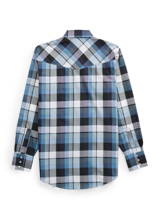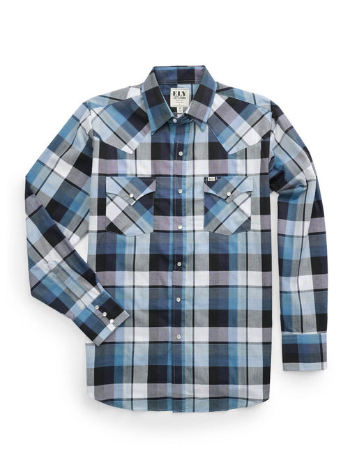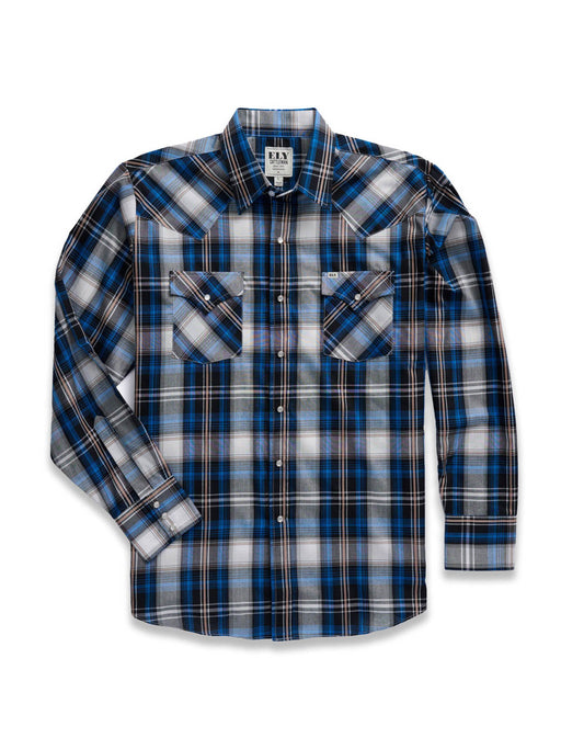 Ely and Walker Mens Western Plaid Snap Blue Poly/Cotton L/S Shirt