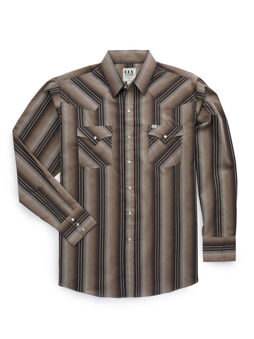 Ely and Walker Mens Western Textured Stripe Brown Poly/Cotton L/S Shirt