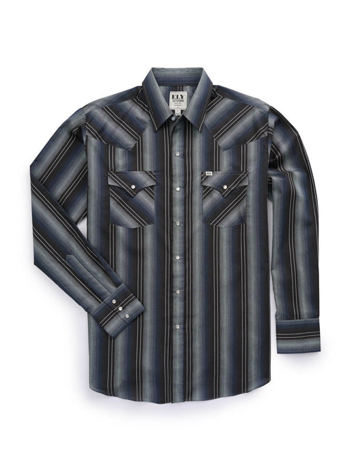 Ely and Walker Mens Stripe Western Snap Black Poly/Cotton L/S Shirt