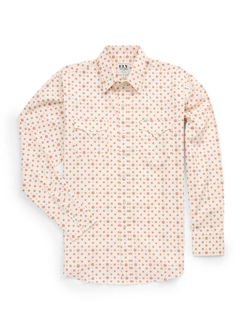 Ely and Walker Mens Western Retro Star Ecru 100% Cotton L/S Shirt