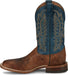 Justin Mens Poston 11in Western Amber/Blue Leather Bent Rail Cowboy Boots
