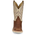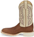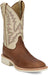 Justin Mens Trainor 11in Western Caramel/Off-White Leather Cowboy Boots