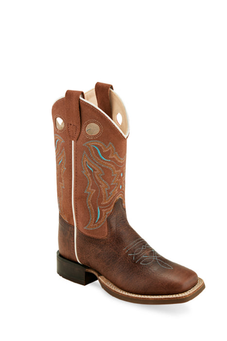 Old West Brown Children Boys Leather Cowboy Boots