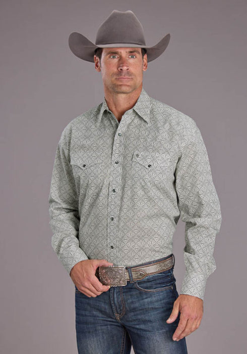 Stetson Mens 2518 Pewter Filigree Grey 100% Cotton L/S Shirt