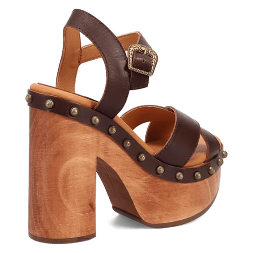 Dingo Womens Echo Wooden Brown Leather Stud Sandals Shoes