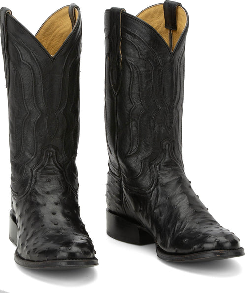 Tony Lama Mens Canonero 12in Western Jet Black Full Quill Ostrich Cowboy Boots
