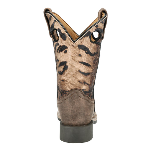 Smoky Mountain Boots Kids Girls Safari Brown Distress/Tiger Leather Cowboy Boots