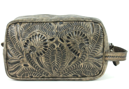 American West Womens Retro Romance Distressed Charcoal Brown Leather Shave Kit
