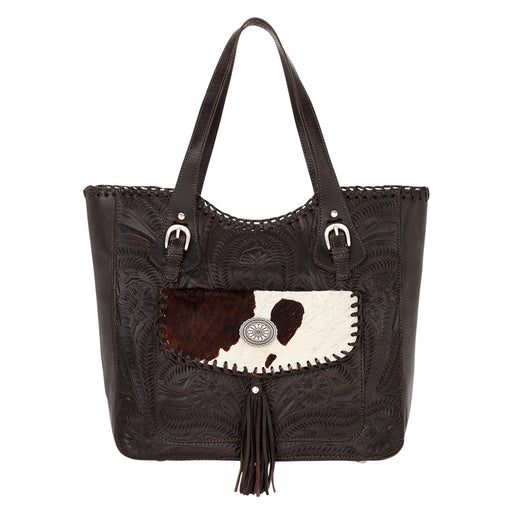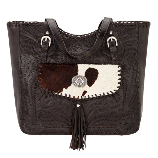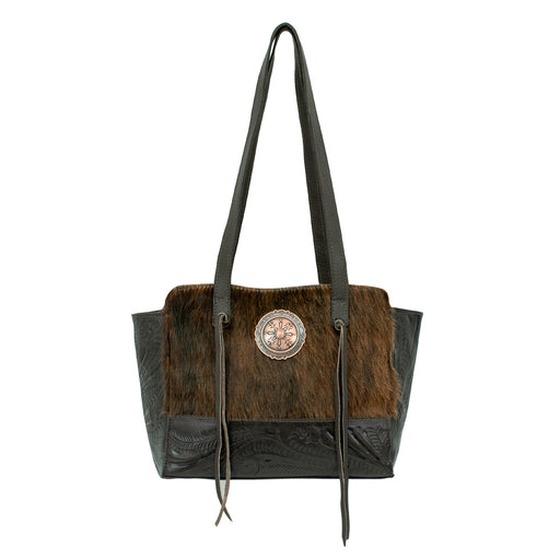 American West Womens Cow Town Secret Brindle Hair-On Leather Shoulder Tote Bag