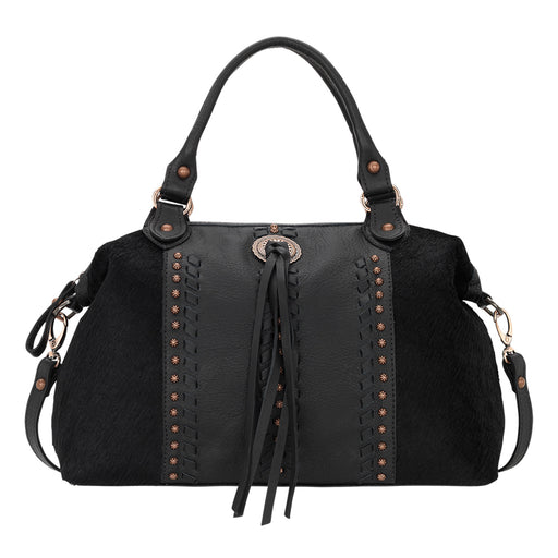 American West Womens Cow Town Black Hair-On Leather Satchel Bag