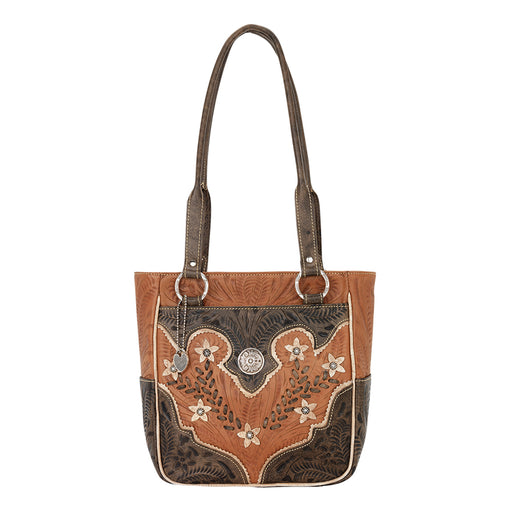 American West Womens Desert Wildflower Natural Tan Leather Shoulder Tote Bag