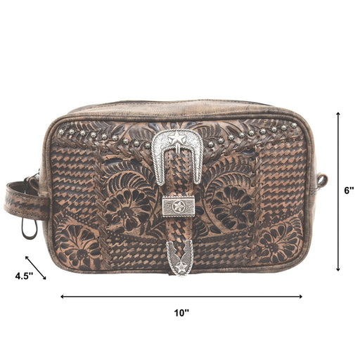 American West Womens Retro Romance Distressed Charcoal Brown Leather Shave Kit