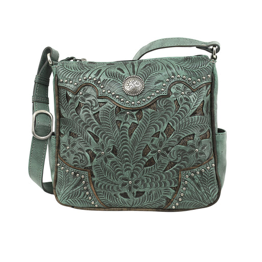 American West Womens Hill Country Inlay Eagle Turquoise Leather Crossbody Bag
