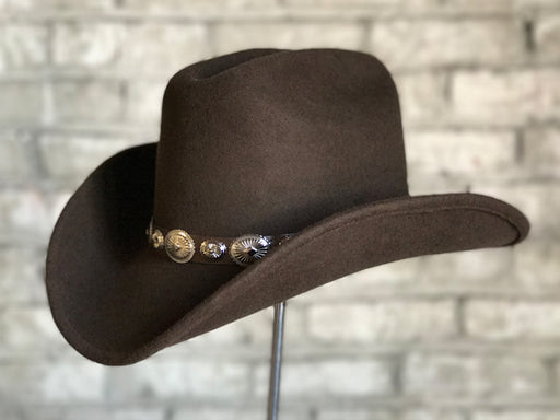 Rockmount Mens Brown Felt Cowboy Concho Magic Pinch Hat