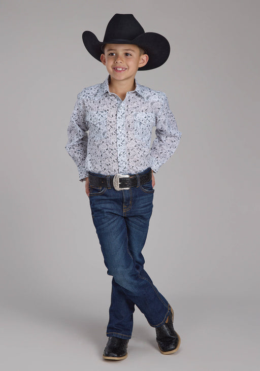 Roper Kids Boys 2428 Paisley White/Black Cotton Blend L/S Shirt