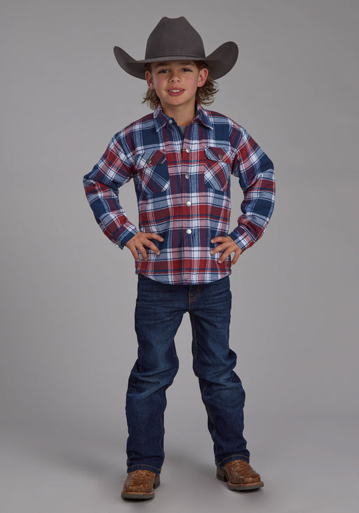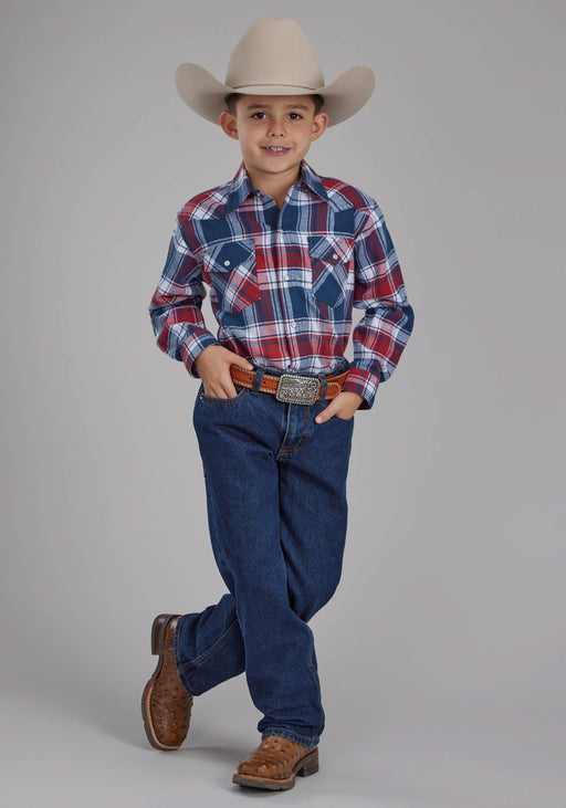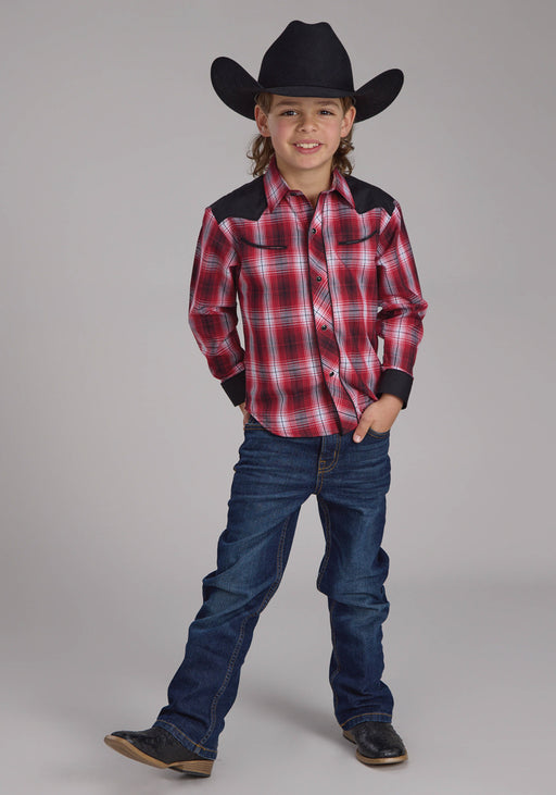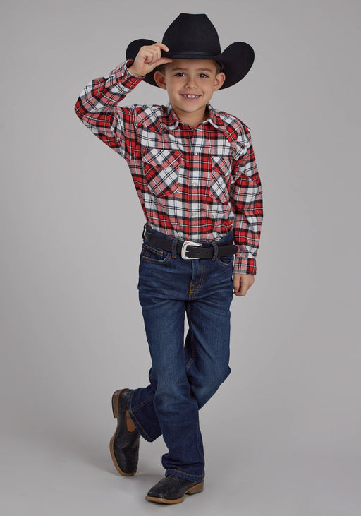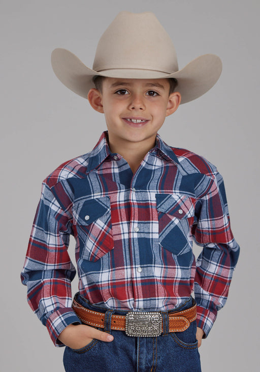 Roper Kids Boys 2131 Plaid Fancy Red/White Cotton Blend L/S Shirt