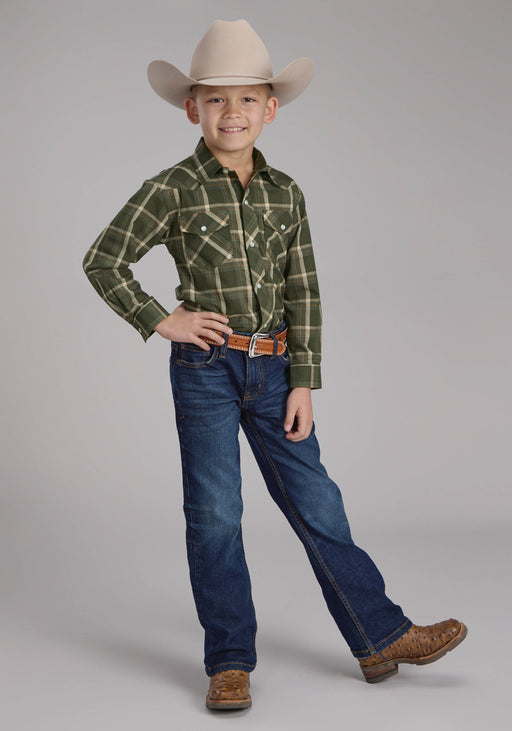 Roper Kids Boys 2127 Plaid Olive/Orange Cotton Blend L/S Shirt