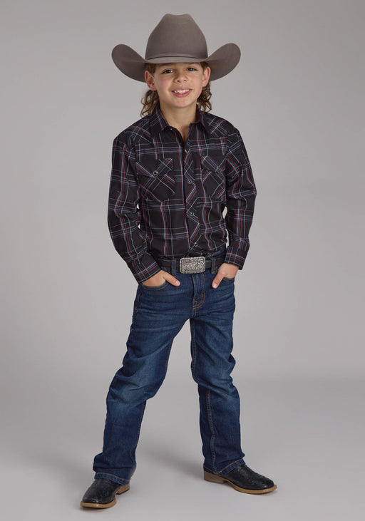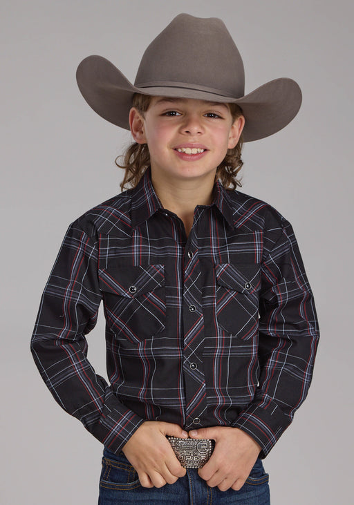 Roper Kids Boys 2130 Plaid Black/Grey Cotton Blend L/S Shirt