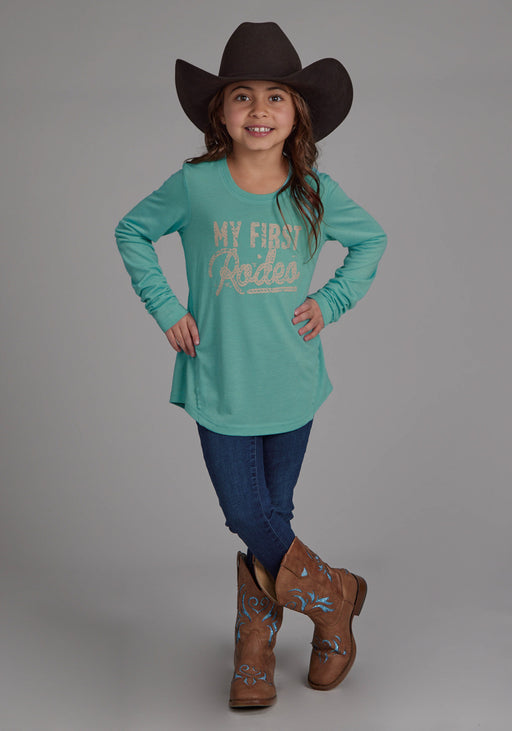 Roper Kids Girls My First Rodeo Turquoise Poly/Rayon L/S T-Shirt