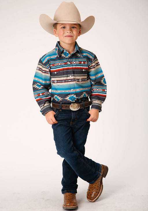 Roper Kids Boys Aztec Blanket Blue 100% Cotton L/S Shirt