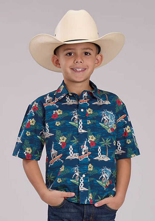 Roper Kids Boys 2462 Panlolos Print Blue 100% Cotton 1 Pkt S/S Shirt
