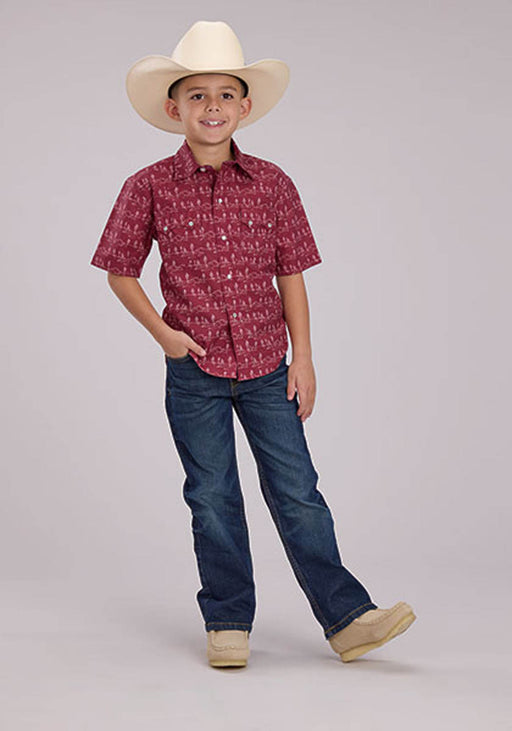Roper Kids Boys 2464 Desert Stripe Red 100% Cotton S/S Shirt