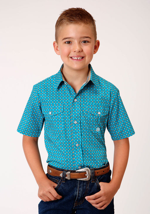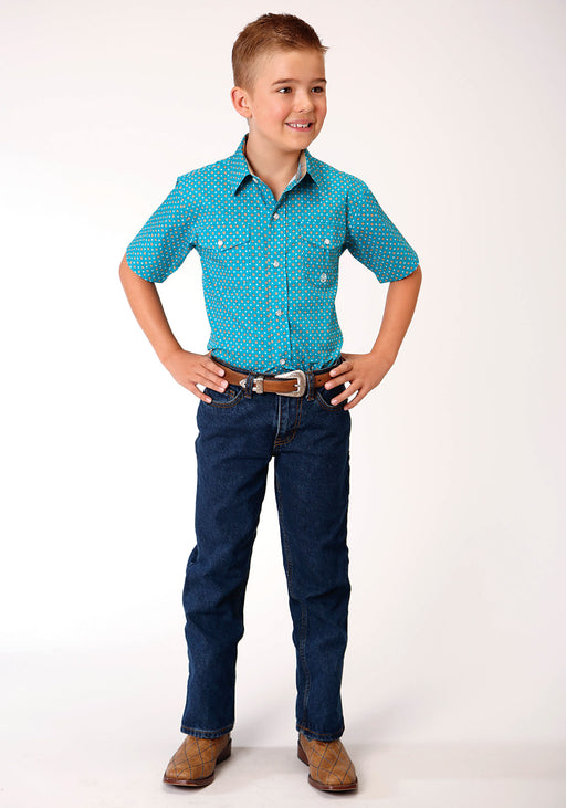 Roper Boys Kids Turquoise 100% Cotton Foulard S/S Shirt