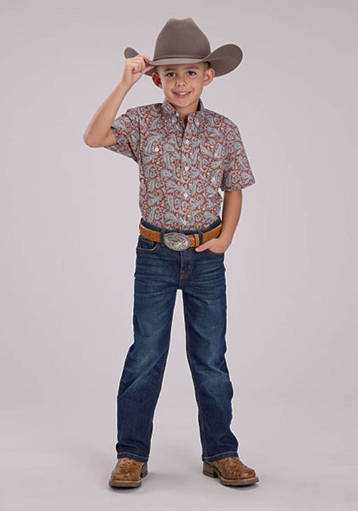 Roper Kids Boys 2499 Clay Paisley Orange 100% Cotton Btn S/S Shirt