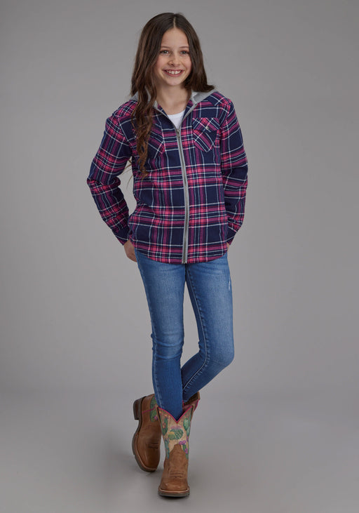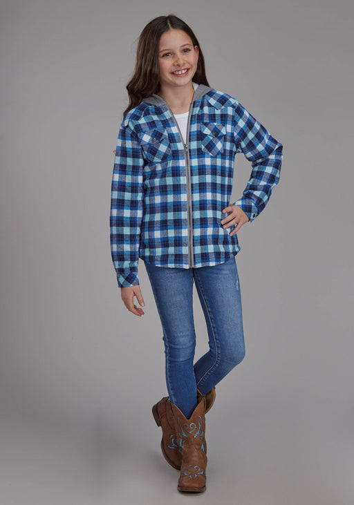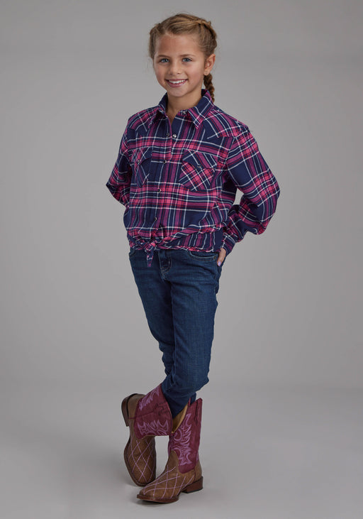 Roper Kids Girls 2206 Unlined Flannel Blue/Pink 100% Cotton L/S Shirt