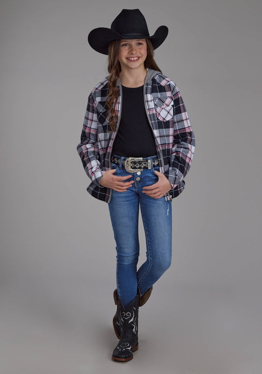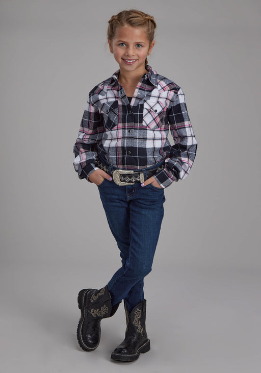 Roper Kids Girls 2206 Unlined Flannel Black 100% Cotton L/S Shirt