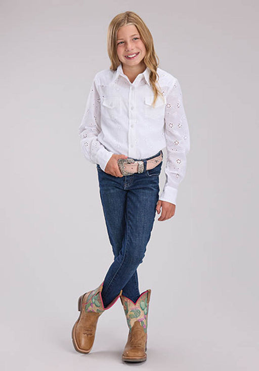 Roper Kids Girls Eyelet Western White 100% Cotton L/S Shirt
