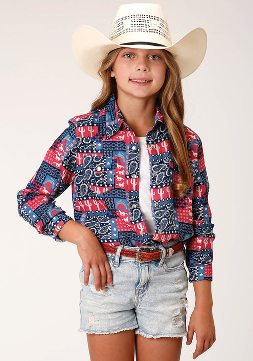 Roper Kids Girls Bandana Print Red 100% Rayon L/S Shirt