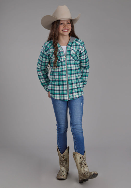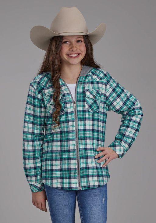 Roper Kids Girls Thermal Lined Shirt Green 100% Cotton Jacket