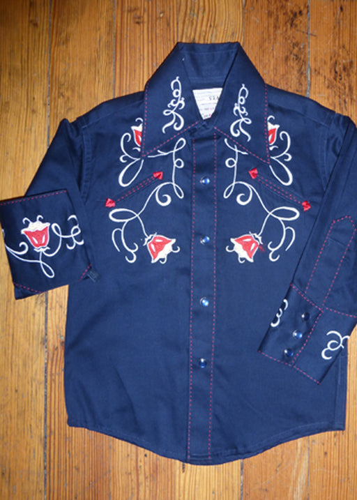 Rockmount Kids Boys Navy 100% Cotton Embroidered Floral L/S Shirt