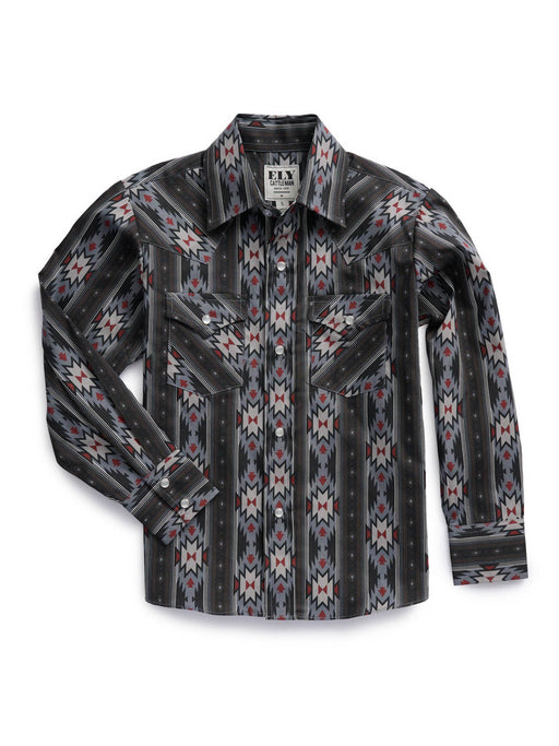Ely and Walker Kids Boys Textured Aztec Plaid Black Poly/Cotton L/S Shirt
