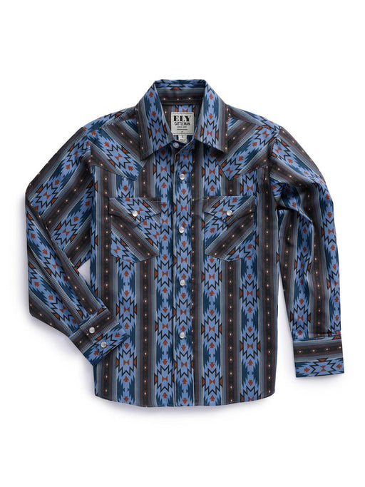 Ely and Walker Kids Boys Western Aztec Print Blue/Black 100% Cotton L/S Shirt