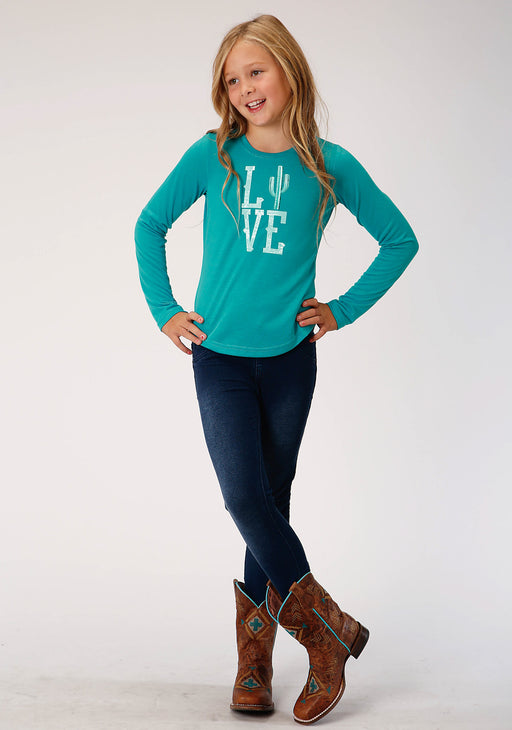 Roper Girls Turquoise Poly/Rayon Love Cactus L/S T-Shirt