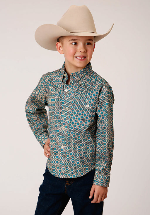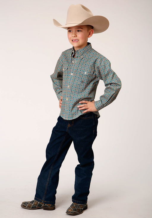 Roper Boys Teal 100% Cotton Button Foulard BD L/S Shirt