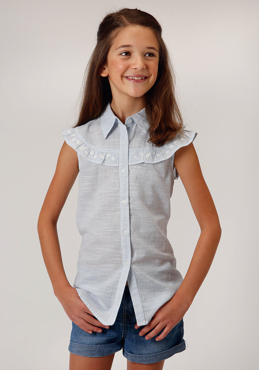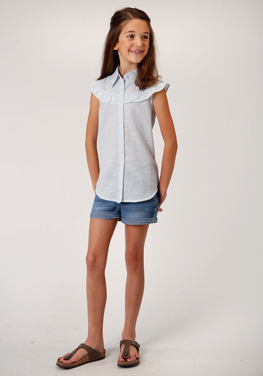 Roper Girls Light Blue 100% Cotton Ruffle Yoke S/L Shirt