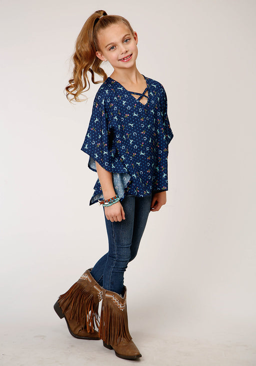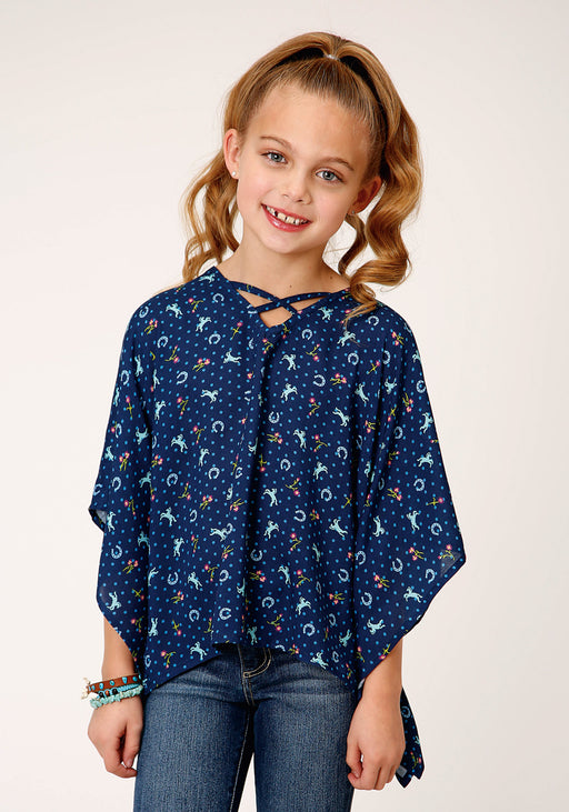Roper Girls Blue Rayon/Nylon Horse Print V-Neck Poncho
