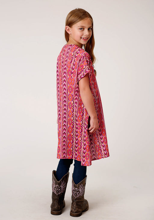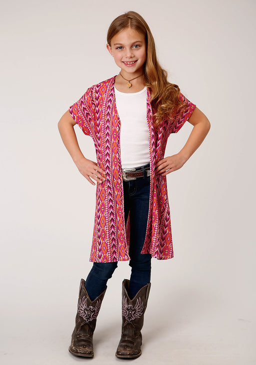 Roper Girls Multi Pink Rayon/Nylon Aztec Print Cardigan