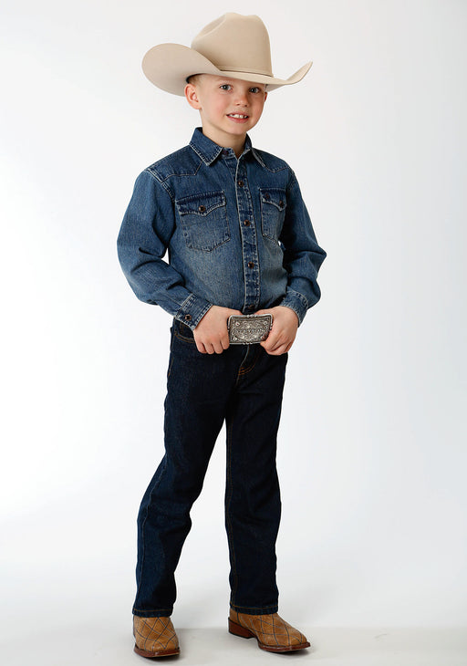 Stetson Boys Blue 100% Cotton Medium Denim L/S Shirt
