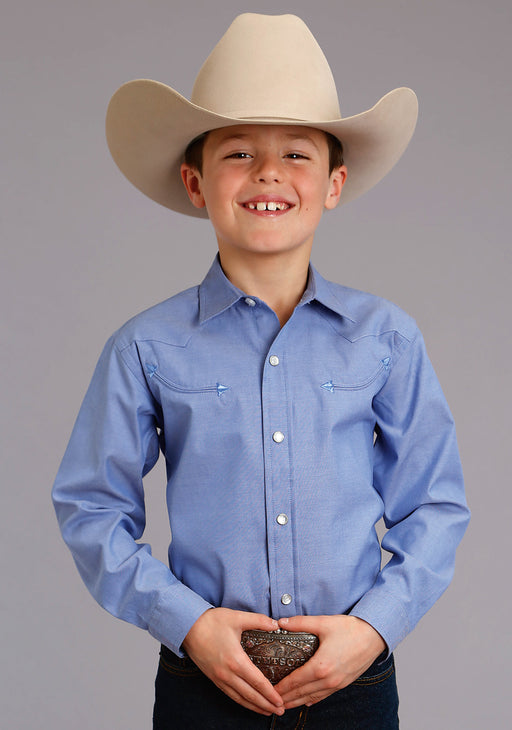 Stetson Boys Blue 100% Cotton Pinpoint Oxford L/S Shirt