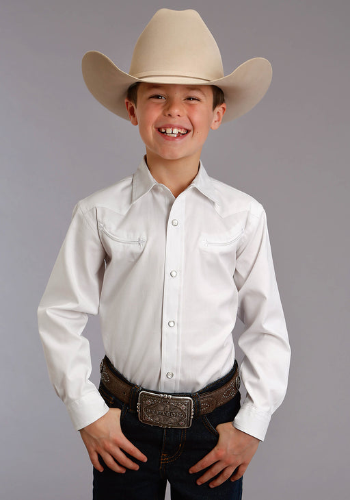 Stetson Boys White 100% Cotton Pinpoint Oxford L/S Shirt