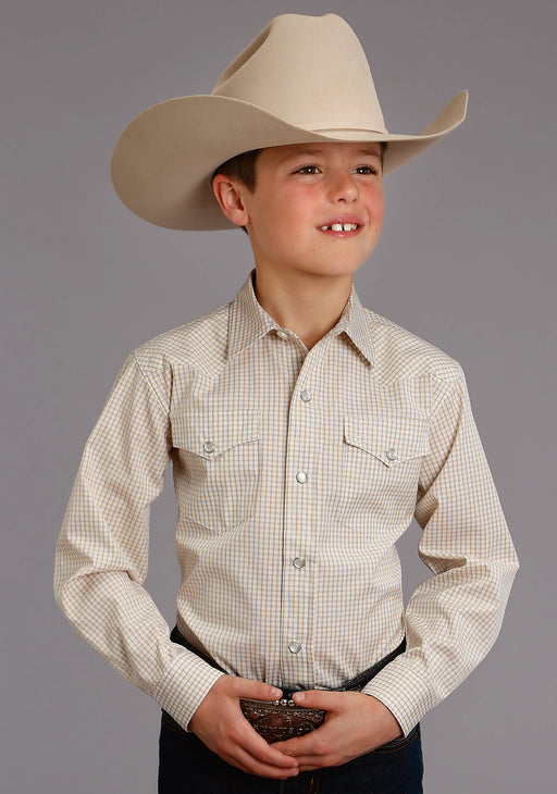 Stetson Check Boys Gold 100% Cotton Two Stripe L/S Shirt