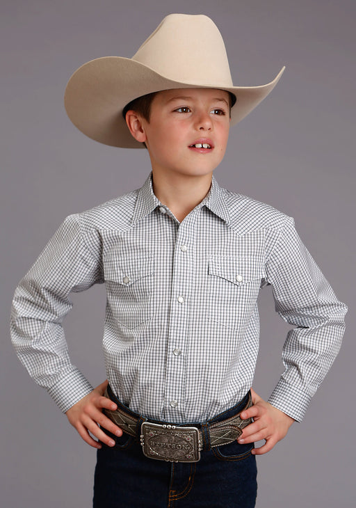 Stetson Check Boys Navy 100% Cotton Two Stripe L/S Shirt